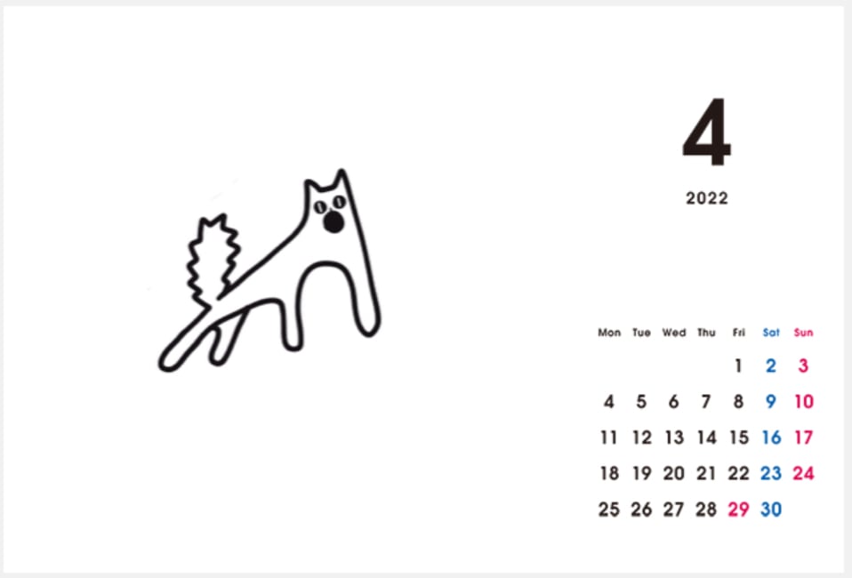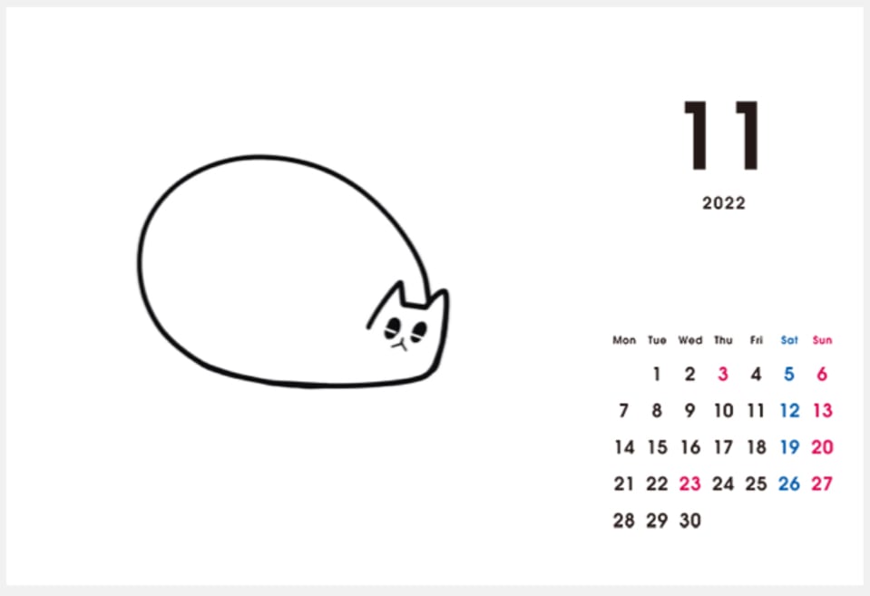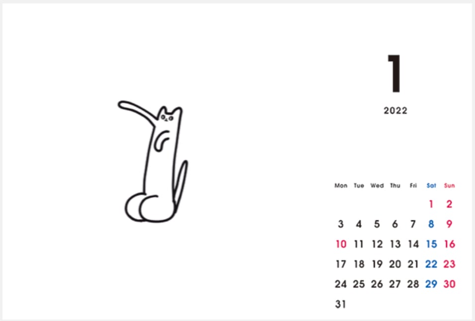 2022年猫カレンダー 白田ちりこオリジナル